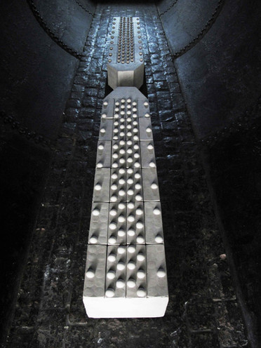 Pero antes de este trágico final, las piezas debían s er trasladadas al “cilindro sepulcral”. Debido al peso de cada pieza, era necesario cuatro personas por lado, por lo que tuve que recurrir a todo aquel que tuviera la amabilidad de ayudar en dicho trayecto. Comienza así el traslado fúnebre; tres automóviles en fila hacia CILINDRO. Luego de instalar las piezas y entrar en relación con el espacio, estas son finalmente despojadas de su materialidad. El yeso deja de ser yeso, se transforma ahora en cuerpo. La ex-chimenea deja de ser ex-chimenea, para convertirse en crematorio, sepulcro o nave espacial. Son re-significados recíprocamente. Lo efímero y lo intangible inundan el espacio.